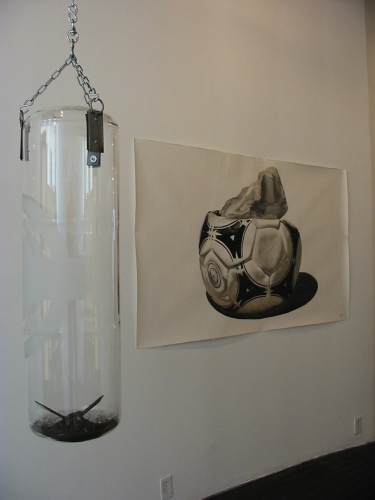 Arrechea defines what he believes is the one “element of truth” in each bag by placing the debris inside a container (in this case a glass punching bag) and identifying its origins on the surface of the bag. The “dust” is merely an abstraction of the place identified by the name. By transporting dust across borders (sometimes with great difficulty) and placing it in a contained space, Arrechea connects and accumulates new experiences -- creating new realities and visual metaphors from his personal memories.