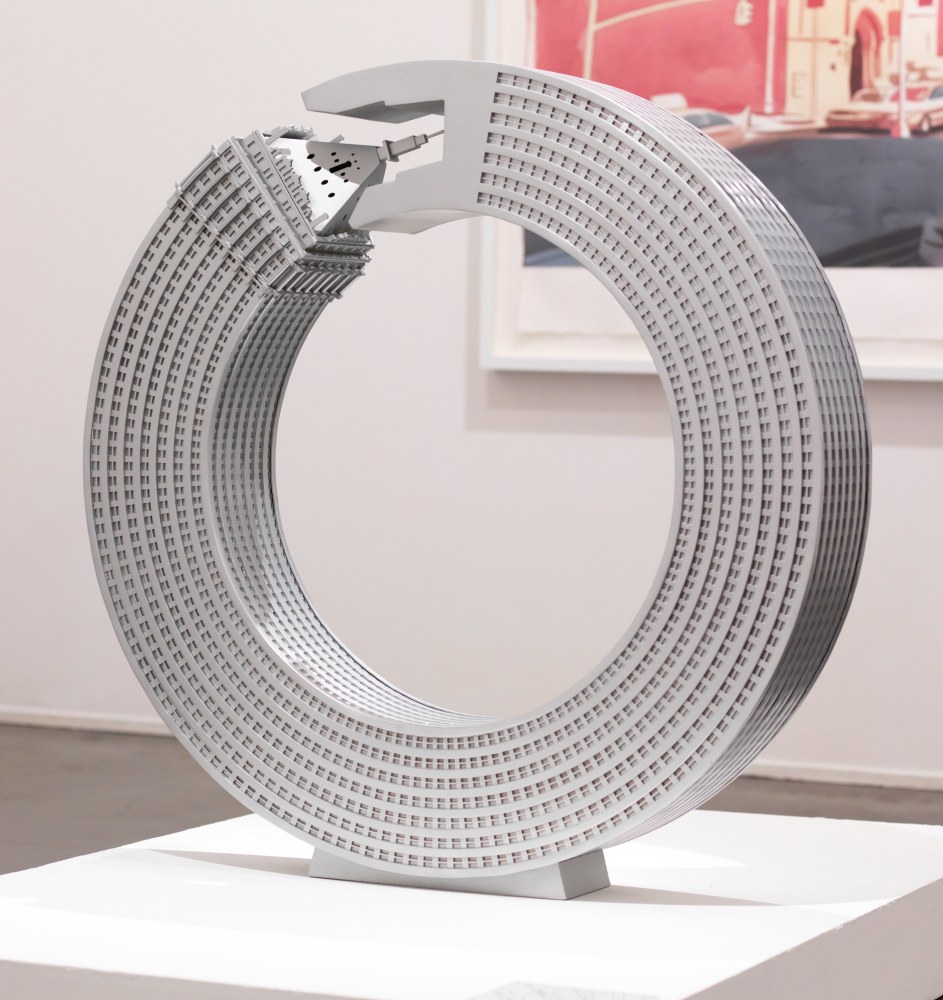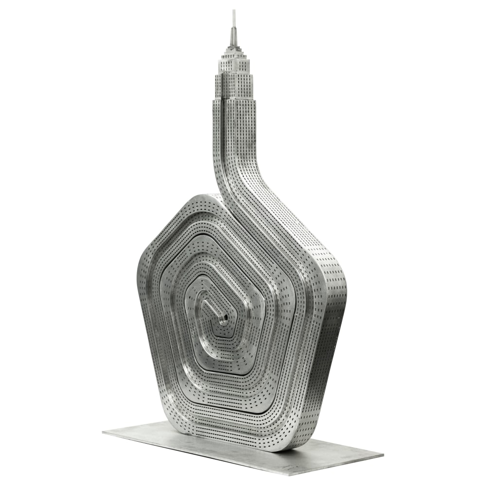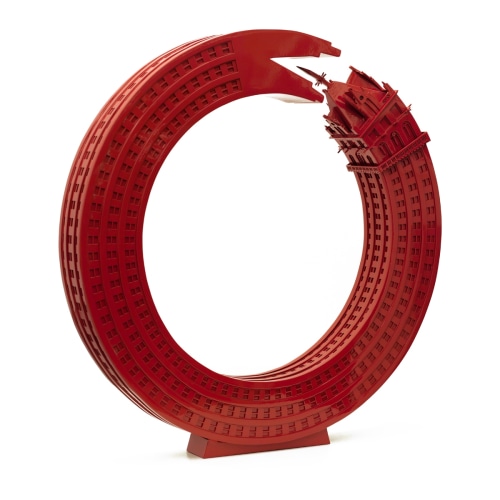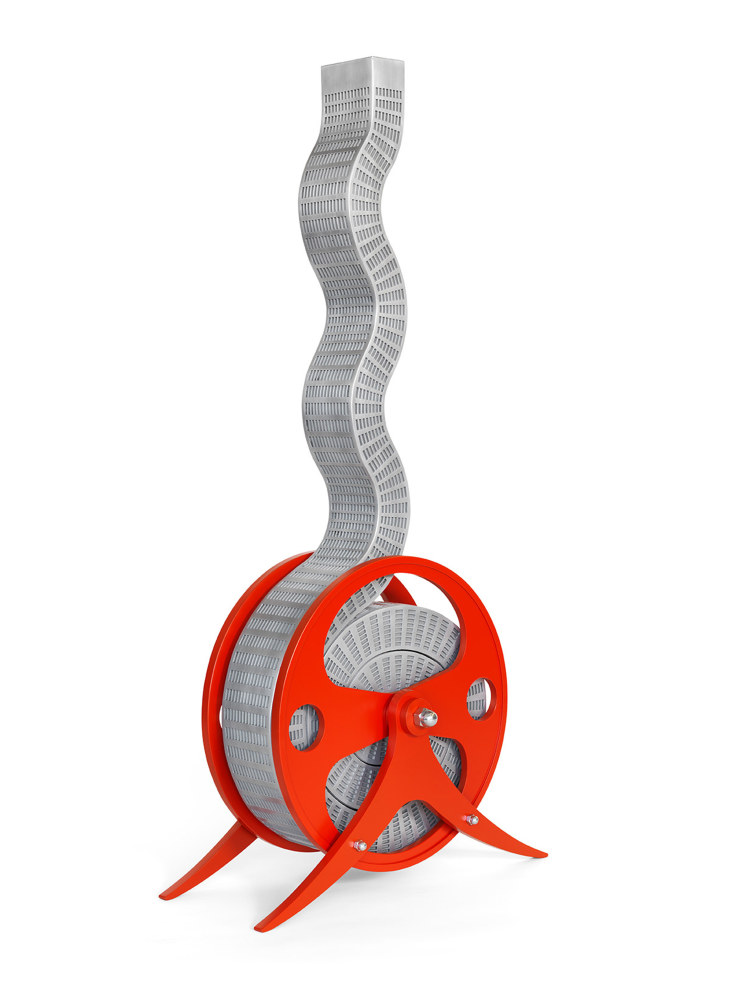 Taking the adaptation of architecture one step further, Arrechea created a series- After the Monument - in 2010 which featured rolled-up stainless steel skyscrapers which serves as the impetus for the No Limits series specific to Park Avenue. In each, Arrechea reshapes the concept of verticality and monumentality into a new reality: elastic architecture, or city. Sculptures maintain the facade and recognizable features of the iconic buildings, but also adopt new forms - an elasticity that is foreign to the structure. This concept serves as a metaphor to the challenges of adapting to new realities we face every day as individuals and society. The buildings are transformed into a tool, or snail-like shapes as if one could reel these rigid structures in like a hose - expanding and contracting with the rise and fall of the economy and the sociocultural and sociopolitical shifts that occur with economic changes.