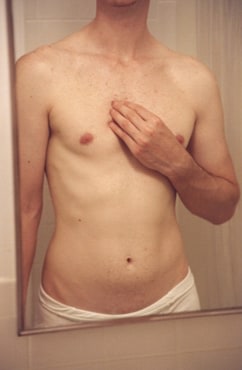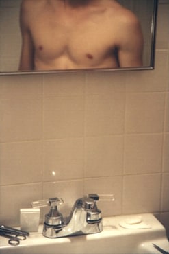 During summer 2001, Ernesto Pujol photographed the solitary rituals of masculinity, i.e. male bodies privately regarding themselves. Pujol choreographed a series of intimate gestures, inviting three men in their 20s, 30s and 40s to perform in the same white bathroom. These were not larger-than-life porn stars relaxing after the money shot, nor towering drag queens wiping off makeup. There was nothing extraordinary about them, no tanned musculature or model beauty. Pujol was interested in exploring the male gaze turned on itself, placing men in the position traditionally inhabited by women in the history of painting. The Bathers, as Pujol entitled this performative photography project, was inspired by historical paintings of women bathers, particularly the French Impressionists, restaged from a queer feminist perspective through contemporary fashion advertising. The C-Prints were later exhibited in a warehouse in Williamsburg as a salon-style installation across two walls. Viewers followed the men from frame to frame like film stills. A silent body entered, regarded himself, motioned, aged, mourned, and exited. We revisit 15 of the original 21 prints a decade later. There is an austere sensuality in Pujol’s monochromatic subtle palette. The gestures range from the temporary to the timeless; the human body is both immortal in its form and ephemeral in its subjectivity. Pujol’s soft-lens holds a fine balance between classical forms and contemporary media images.