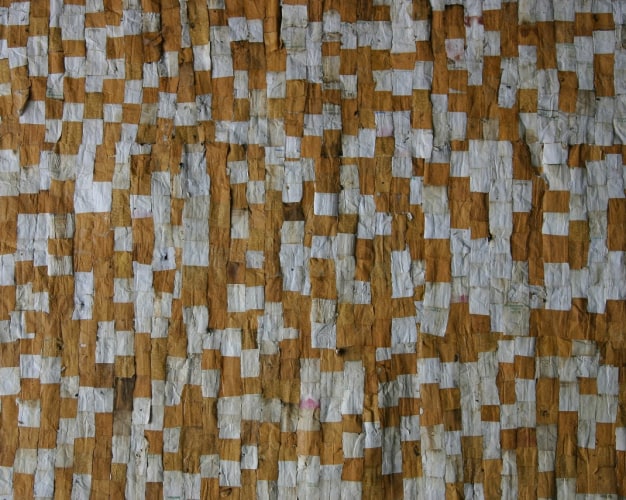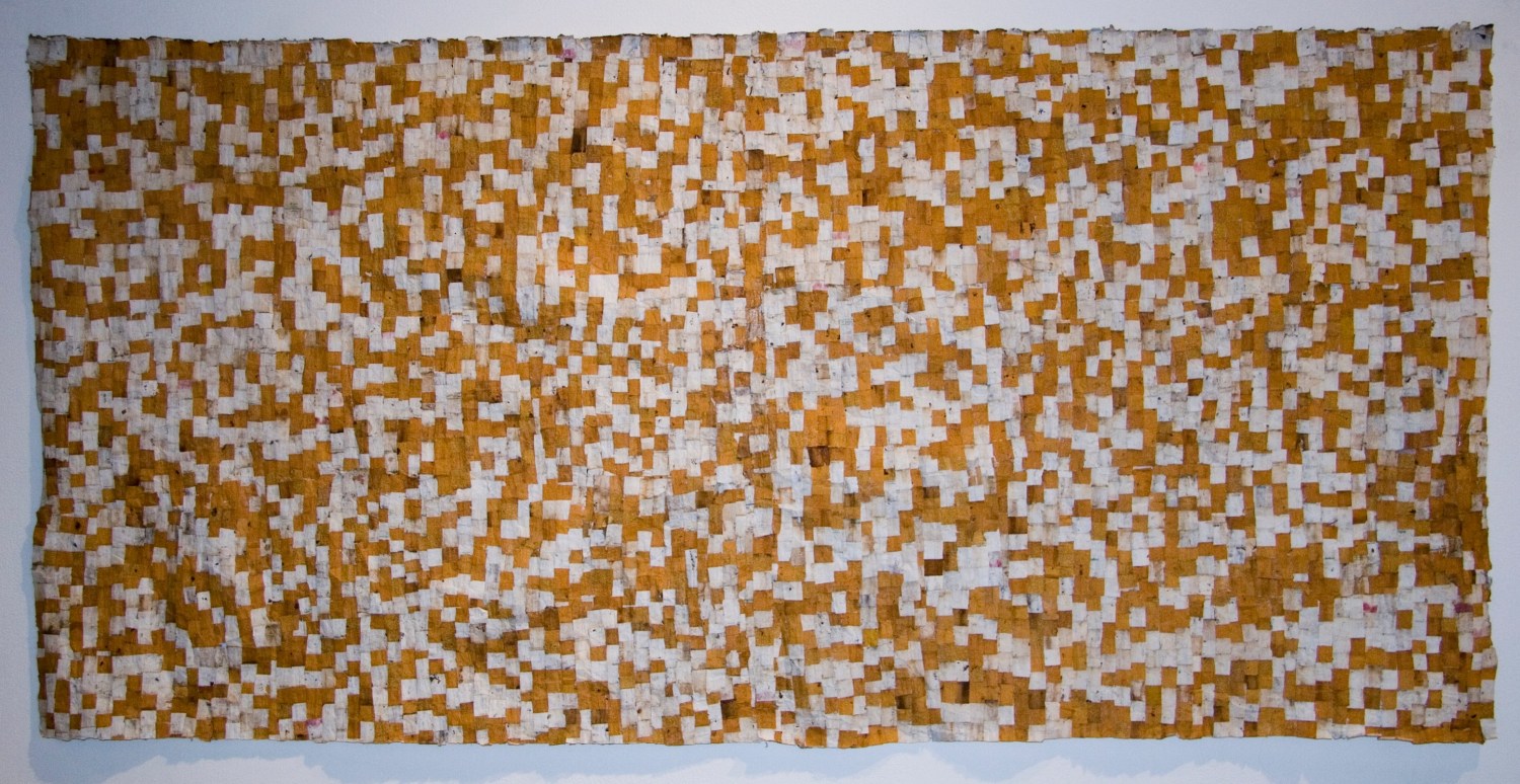 Jesus "Bubu" Negron (b.1975) is a multidisciplinary artist working in Barceloneta and San Juan. In his piece Cigarette Butt Street Rug at Magnan Projects, Negron fabricates a carpet from the wrappings of used and discarded cigarettes. Working in this language of conceptualism, Negron's work forces us to question the affects of greater socio-political ideas on our everyday lives.