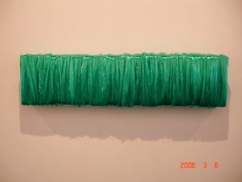 Art Critic Franklin Sirmans observes, “The new work of Gregory Coates, like those before it, comes from a deep and long tradition with abstraction and common materials—discarded, excess or just plain forgotten. Assembled of wrapped rubber and plastic, the works are layered and often three-dimensional. Yet, as Deirdre Scott has noted, Coates “works at the junction between disciplines, media and meaning creating works that are wholly constructed, at once painting and wall sculpture.”