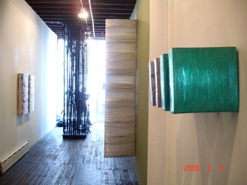 One might find that Coates’ works speaks of the fabric of the urban landscape. The materials come from warehouse, perhaps like those of the garages that once populated the now gallery-filled streets of Chelsea. Fittingly, this show is called Strut. Walking sidewalks or streets--the changing urban landscape—the material is a reminder of the erosion of working-class urban landscapes. As a modernist-inspired flaneur, Coates struts and works at the same time. The disappearance of neighborhoods in favor of marketable development is also very much at the heart of these works. Using industrial colors like beige and a house paint white, the constructions seemingly celebrate a more gritty reality that takes comfort in the fact that there is so much to offer in the material world at our hands. Fortunately for us, Coates brings that reality to life.”