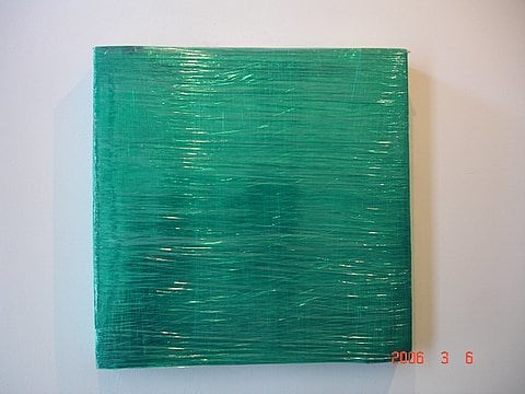 Coates’ interest in surface and material is not limited to rubber. In other pieces, he wraps the surface of wood palette frames with shrink wrap, emulating elements of layering found in traditional painting techniques and incorporating aspects of drawing in their linear forms. His unique use of materials and hybrid approach to art push the envelope as to what constitutes a painting.