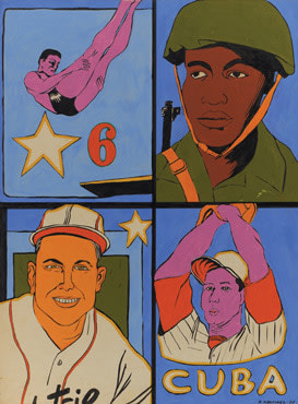Eagerly Awaiting takes into account Martínez’s significant break with the prevailing ideas behind American and European Pop Art and Photorealism. While deeply influenced by these movements, Martínez translated them into something distinctly Cuban: his Pop canvas Yo He Visto focuses on Cuban national hero Jose Martí, paying tribute to his cultural contributions, rather than ironically critiquing him as the work of Warhol or Oldenburg does with American consumerism. In Untitled (Cowboy), Martínez’s photograph of a young caballero documents the nation’s pride in its youth. Martínez paints colorful layers of blues, reds and pinks atop the actual photograph, effectively taking the formal ideas behind Photorealism and imbuing them with revolutionary sentiment. In these and other works, Martínez’s singular and at times transgressive tendency against mainstream art movements attains a poetry in a language that is all its own.