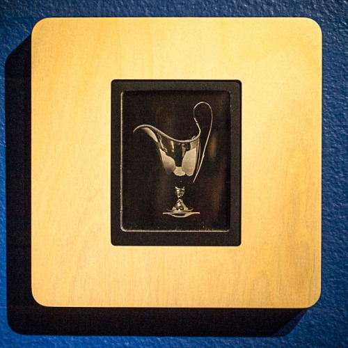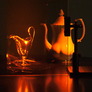 Silver Before Photography is a hologram of English silverware manufactured before the invention of photography. The silverware looks modern and ageless. It is illuminated by diffused lighting reflecting from two recent Apple™ devices that are not themselves visible. In the jug, a small Apple™ logo is visible in reflection. The hologram presents the illusion of antique spoons and ladles, resting on a table, ready for use.